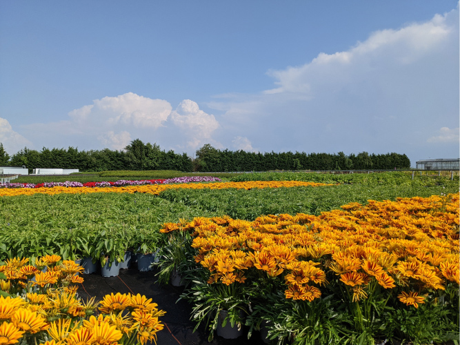 Our 30-acre outdoor plant nursery in Spalding grows a variety of outdoor plants in many pot sizes to suit market requirements. Lowlands is renowned for the quality of its plants. Everything is grown using a system which utilises rainwater, which minimises water usage.